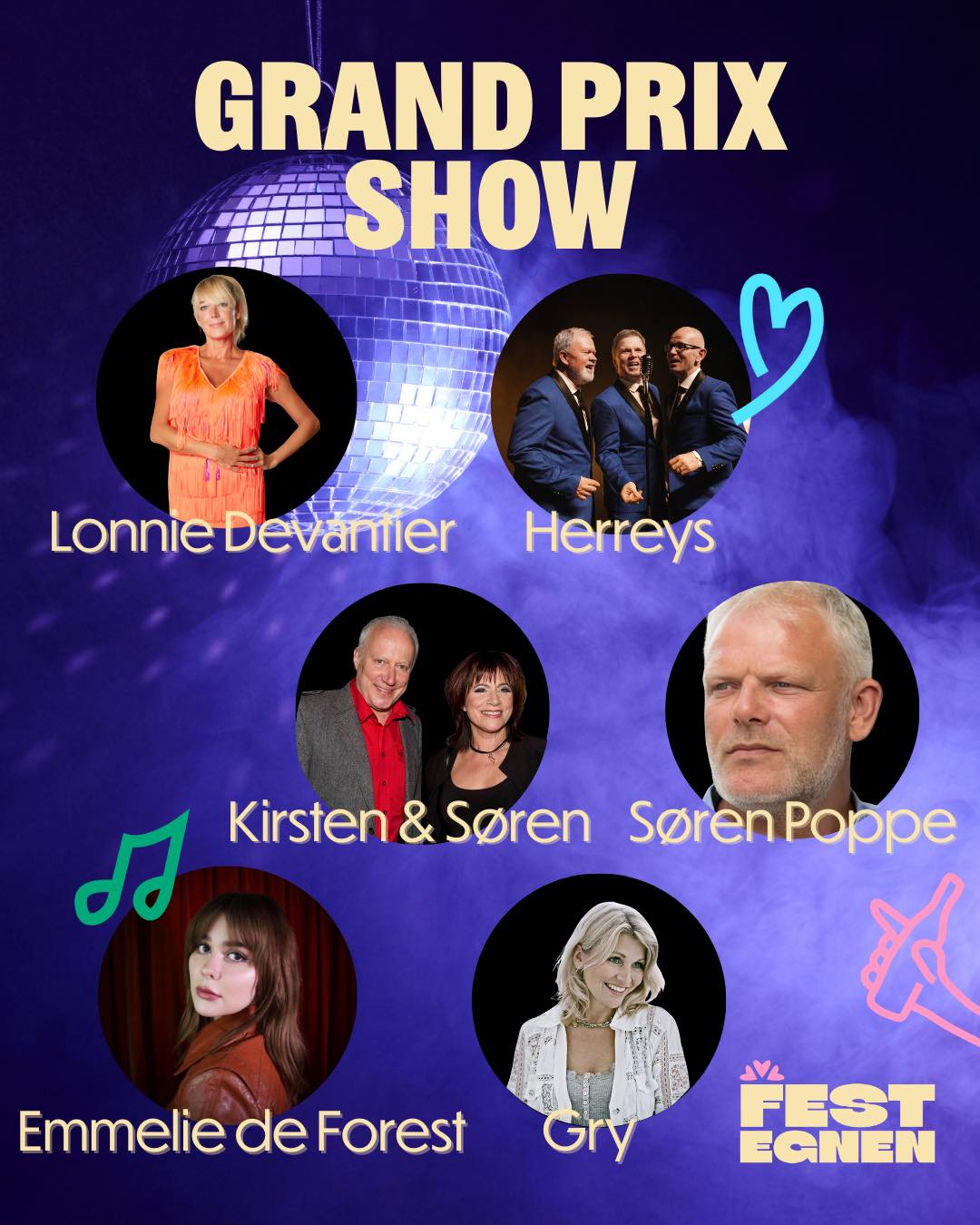 Oplev Gry, Herreys, Søren Poppe, Kirsten & Søren, Emmelie de Forest og Lonnie Devantier i et særligt show med ikoniske hits, glitter og masser af Grand Prix-stemning.
